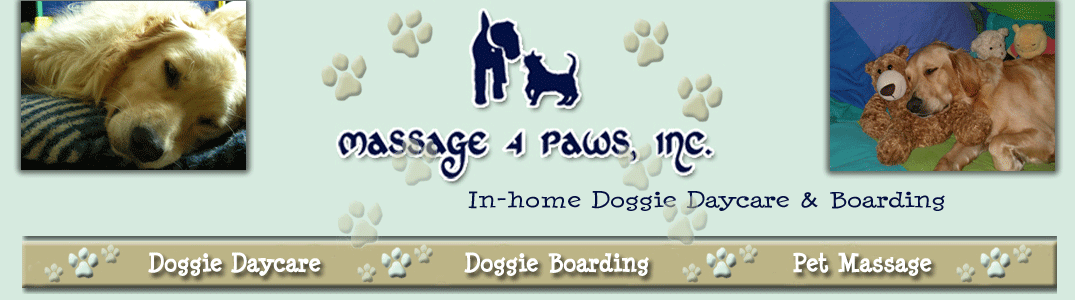 | Massage 4 paws is very proud to announce its new in-home doggie daycare and boarding services for friendly and well-mannered dogs. |